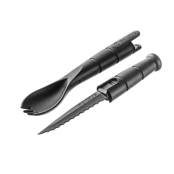 Uma ferramenta simples e prática. Os talheres INVICTUS Normandia são indispensáveis em jornadas onde restaurantes são apenas miragens. O Normandia é um 3 em 1 composto de colher, garfo e faca que se encaixam numa única peça. O material é fabricado em poliamida, que resiste a altas temperaturas (cozimento), e é atóxico.